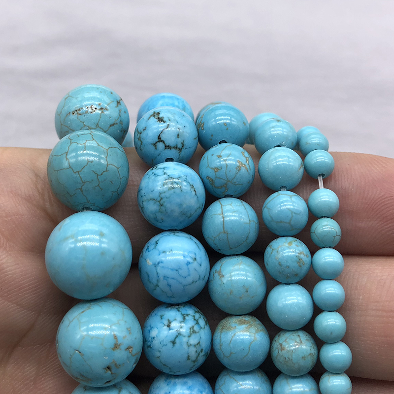 天然浅蓝色松石散珠子玉髓diy手工串女圆珠配件耳饰品佛文玩吊坠,浙江 金华