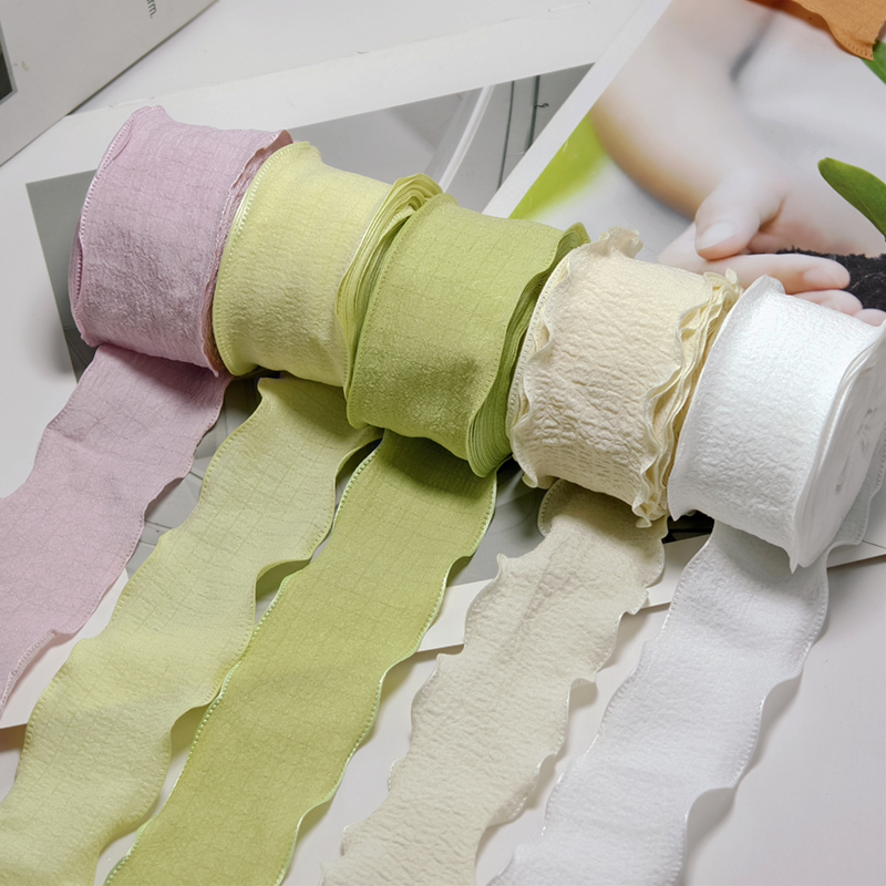 4cm宽花边皱皱丝带鲜花花束包装彩带礼品盒diy材料蝴蝶结绸带,浙江 金华