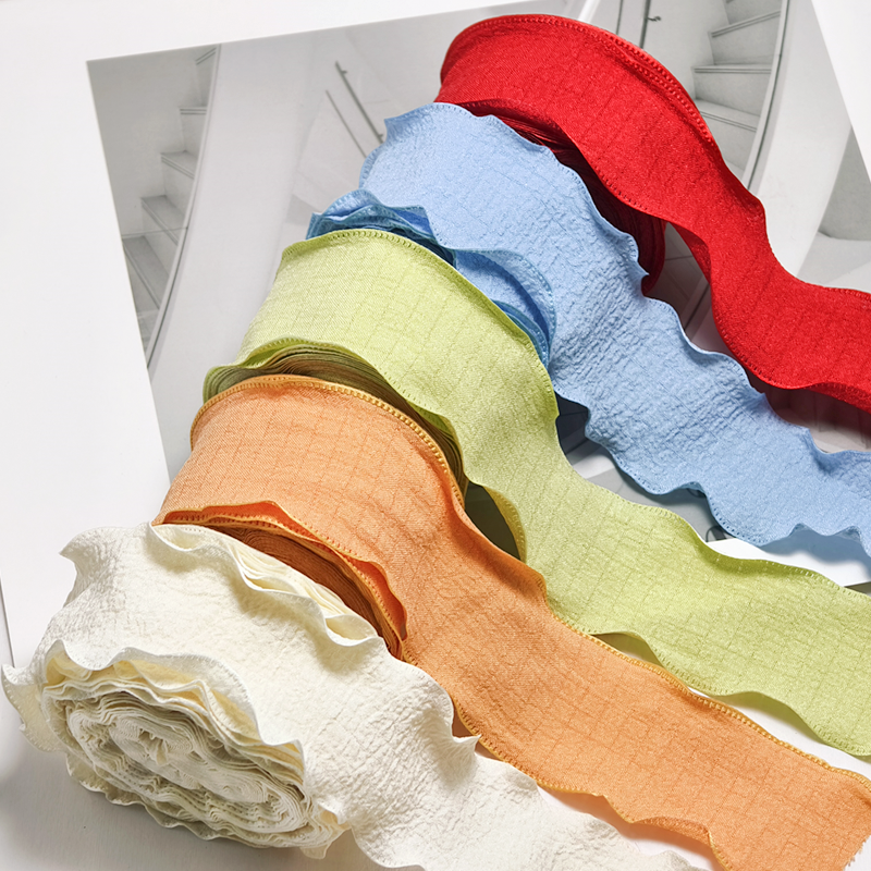 4cm宽花边皱皱丝带鲜花花束包装彩带礼品盒diy材料蝴蝶结绸带