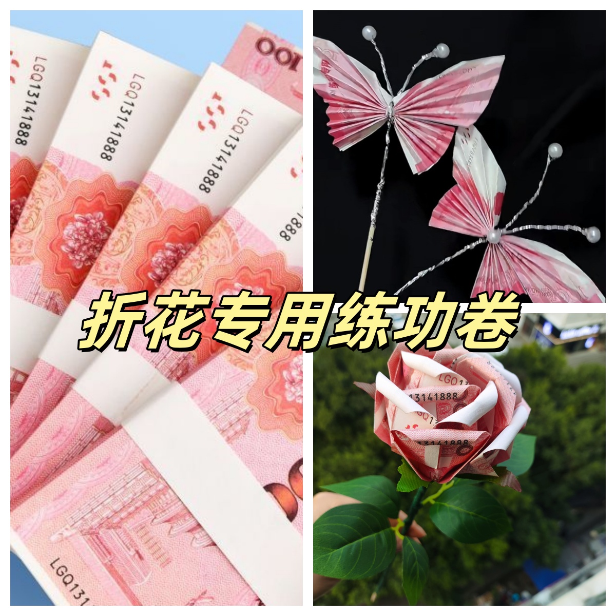 玫瑰蝴蝶花有钱花折纸材料练功卷点钞学习专用券计比赛影视道具,重庆