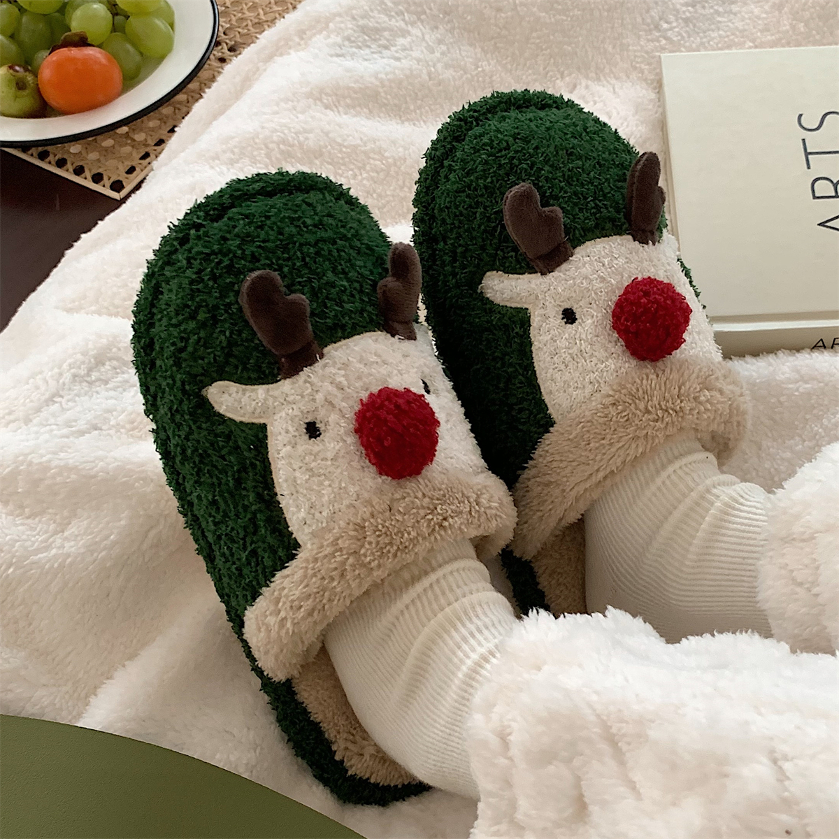 细细条ins可爱圣诞麋鹿棉拖鞋女冬时尚情侣居家毛绒绒卡通棉鞋男,广东 揭阳