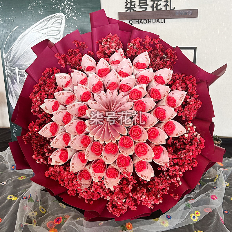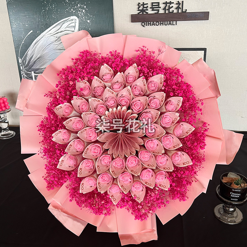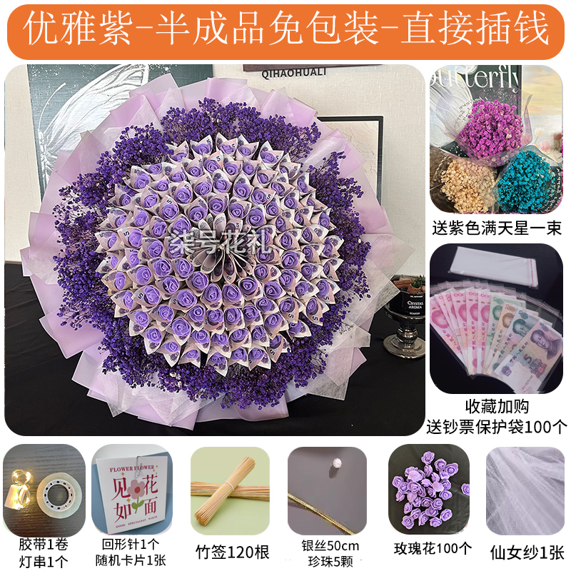 有钱花diy材料包全套成品生日七夕礼物送女生免包花束半成品包装,山东 济南