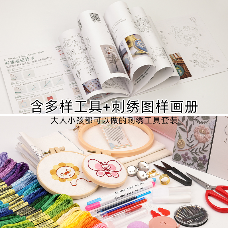 亲子早教绣花儿童刺绣工具全套材料包针线绣线材料包解压打发时间,浙江 丽水