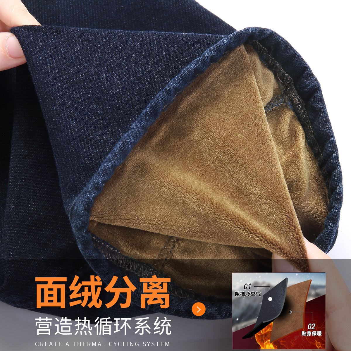 捷纯冬季加绒加厚牛仔裤男冬长裤男士大码休闲裤子弹力宽松保暖裤