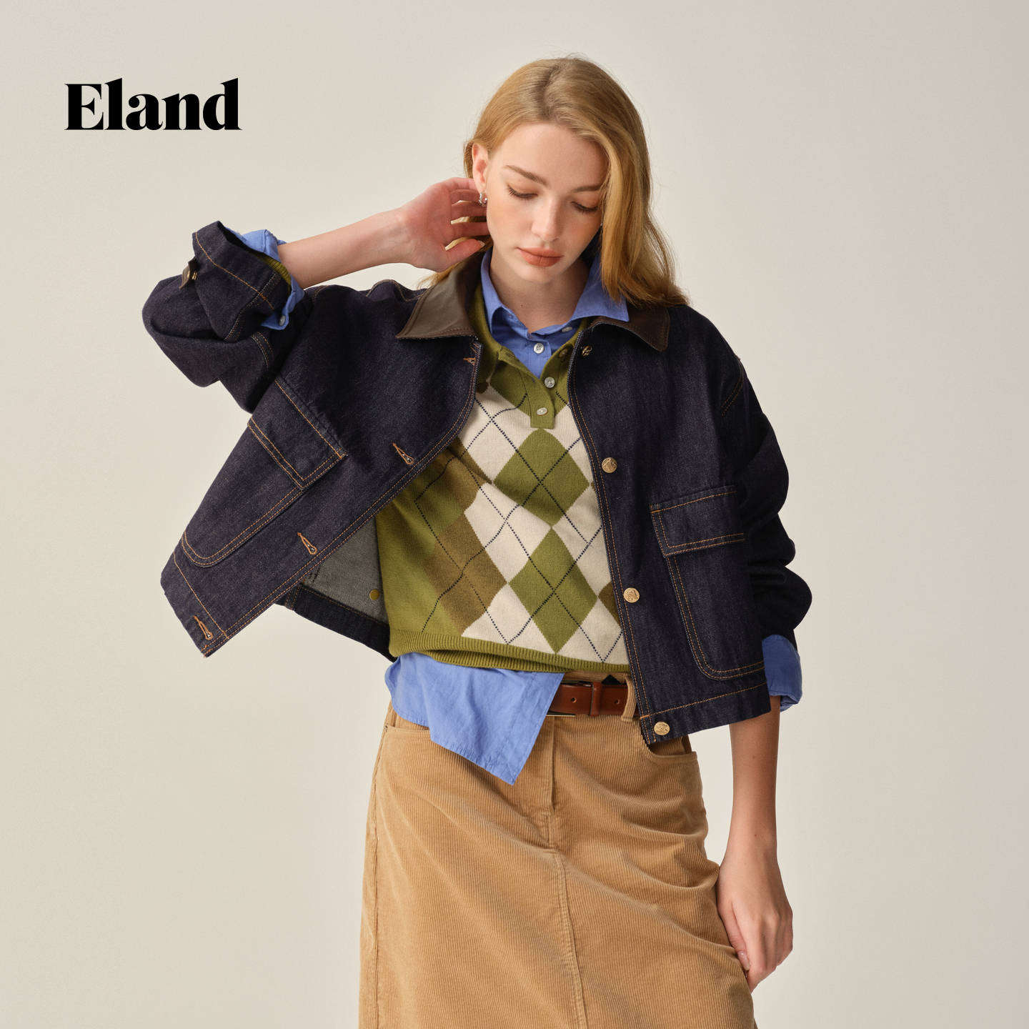 Eland衣恋短外套长袖通勤牛仔女装2025冬季新款,上海