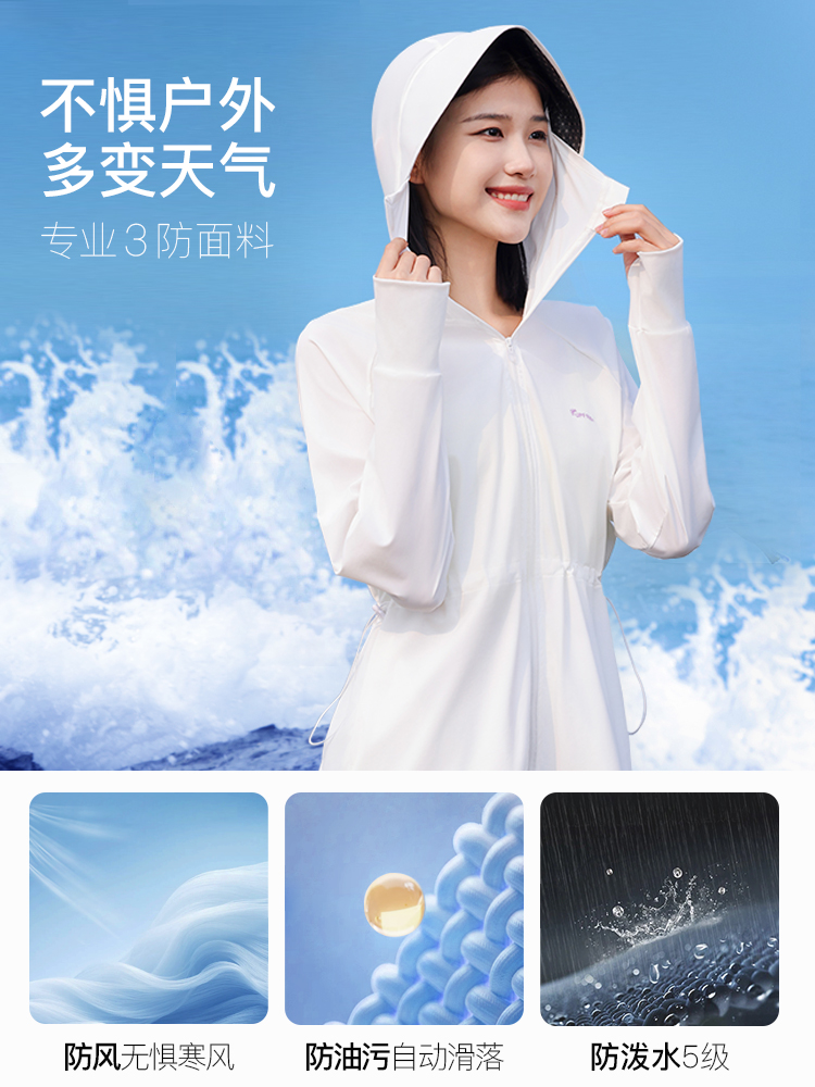 防晒衣女2025新款夏季中长薄款防紫外线收腰显瘦原纱运动皮肤外套,浙江 金华