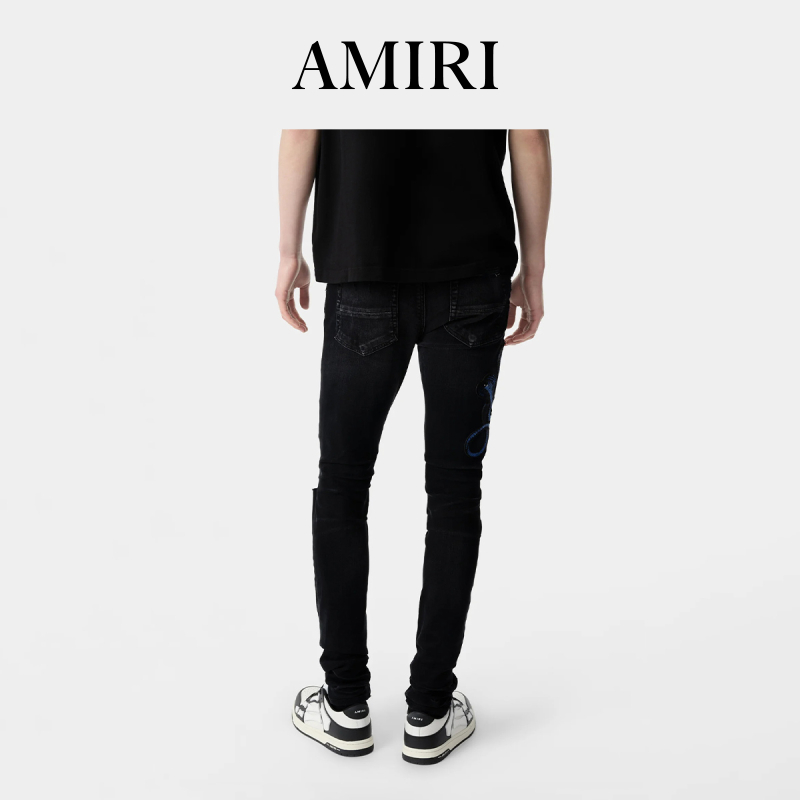 【年终盛典】AMIRI 早秋男装 个性撞色破洞紧身牛仔裤