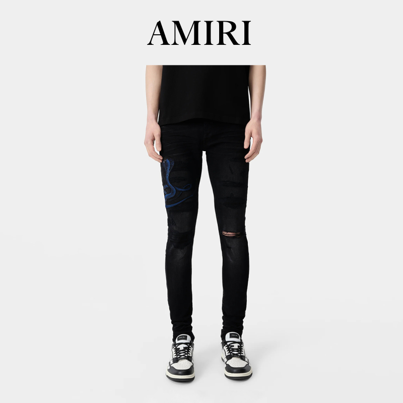 【年终盛典】AMIRI 早秋男装 个性撞色破洞紧身牛仔裤,浙江 嘉兴