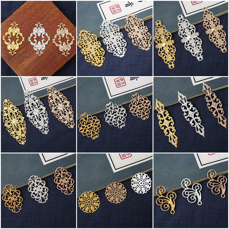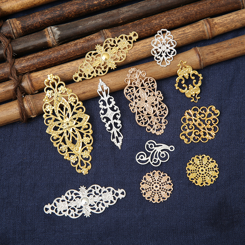 diy饰品配件古风新娘发冠头饰发簪材料包纯铜祥云花片长条打底片,浙江 金华