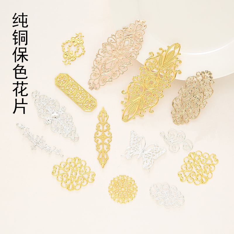 diy饰品配件古风新娘发冠头饰发簪材料包纯铜祥云花片长条打底片