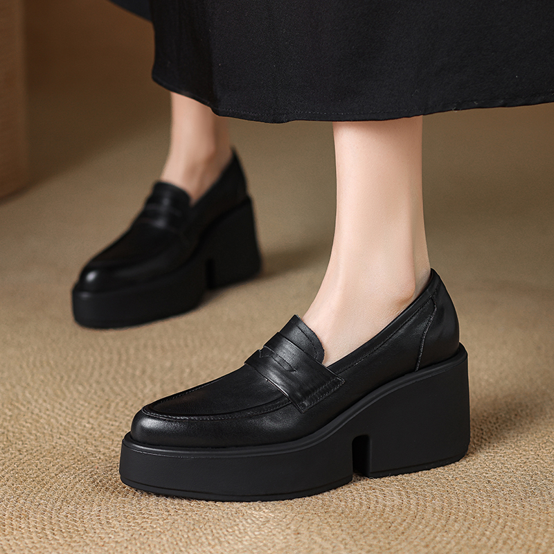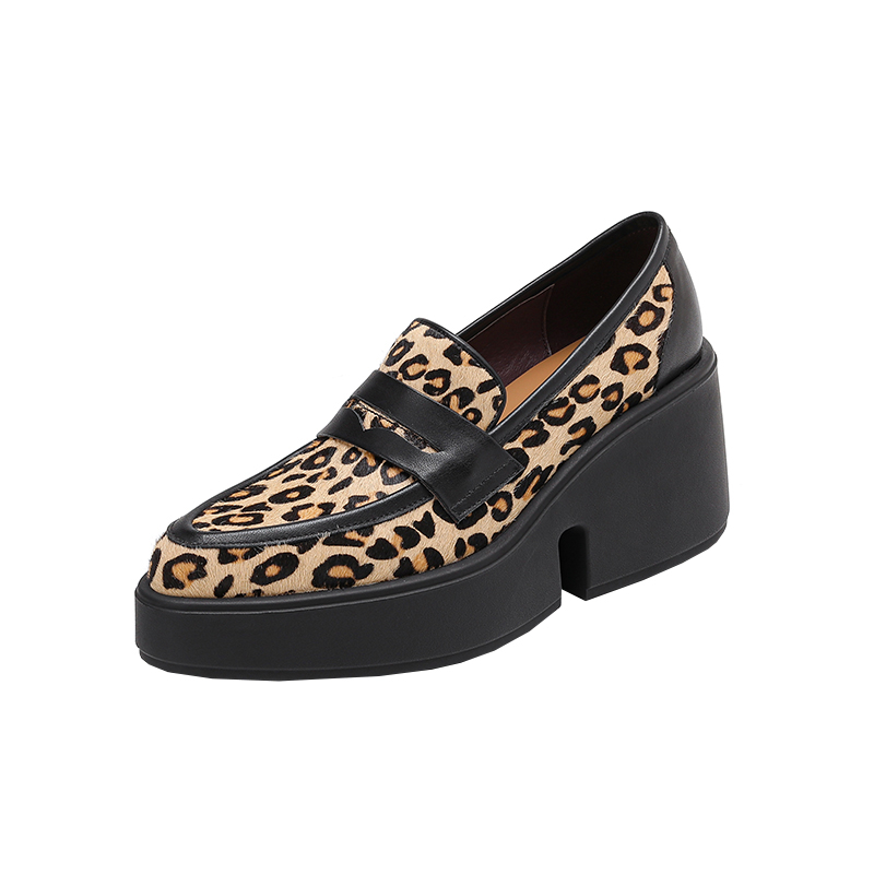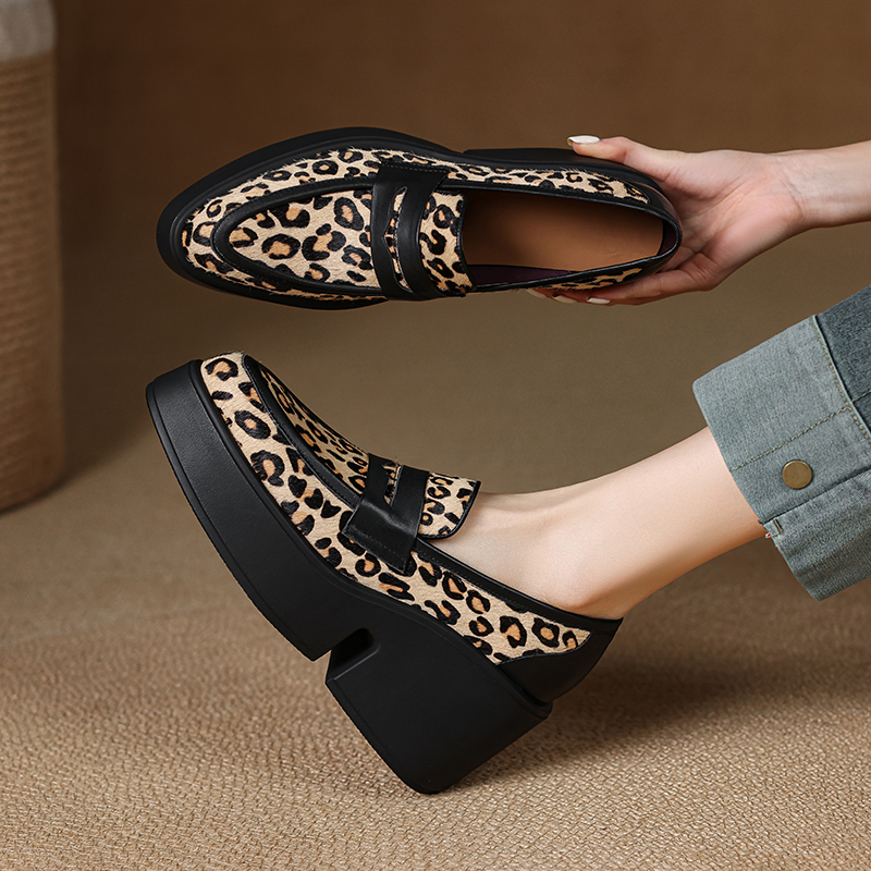 高跟厚底真皮乐福鞋女2025新款豹纹色一脚蹬小皮鞋英伦风百搭单鞋,四川 成都