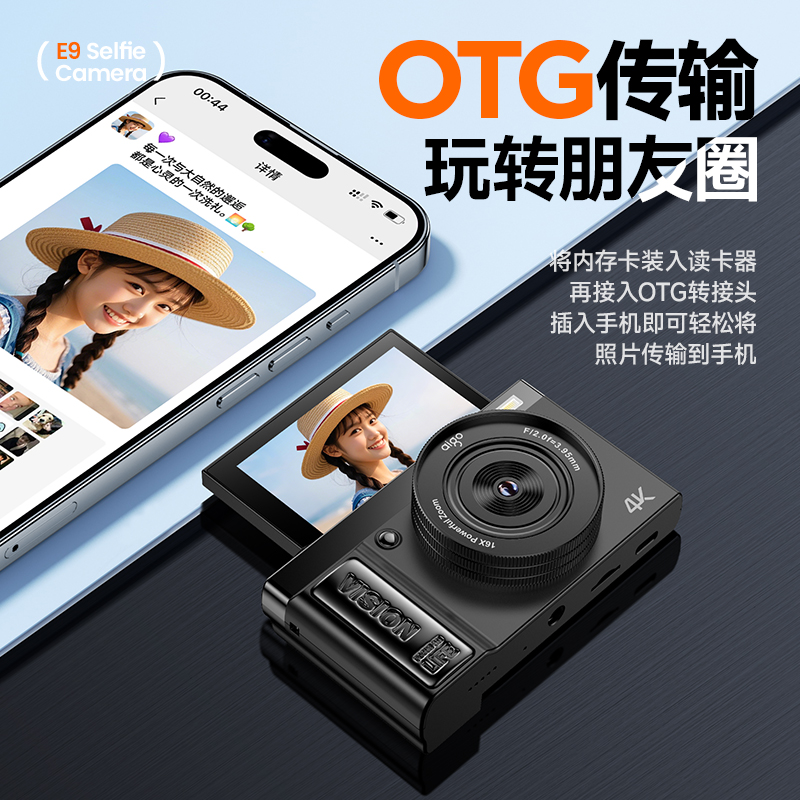 爱国者E9相机新款数码高清女生自拍旅行ccd平替随身小型入门学生,广东 东莞