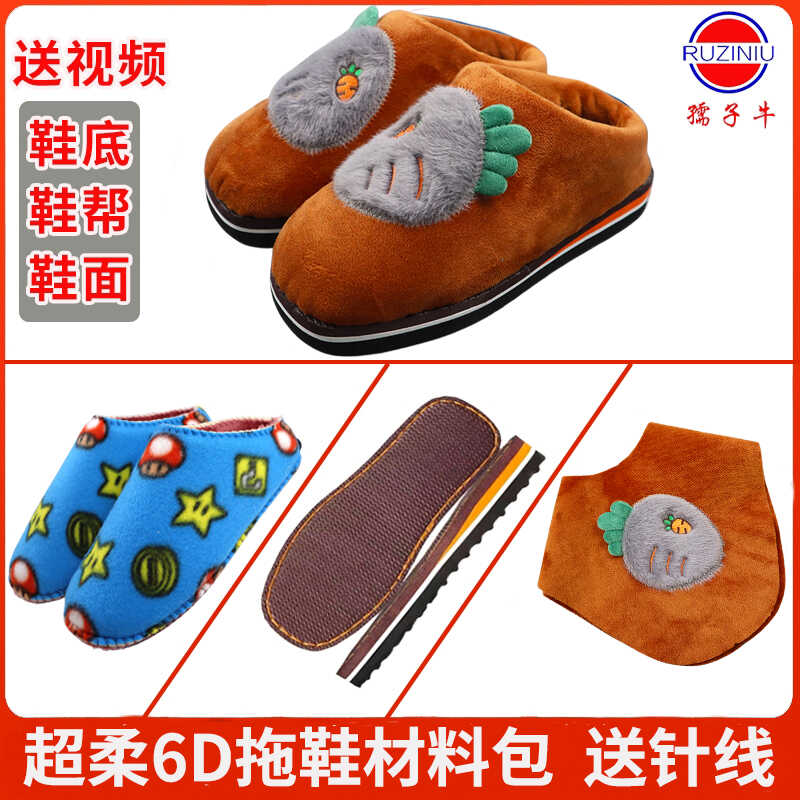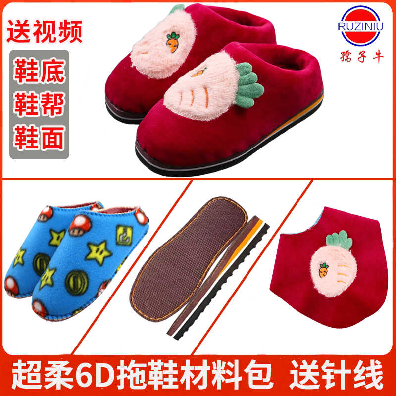 5送1套装手工6D仿兔毛绣花棉拖半成品加厚半跟鞋面布套材料包保暖,湖北 黄冈