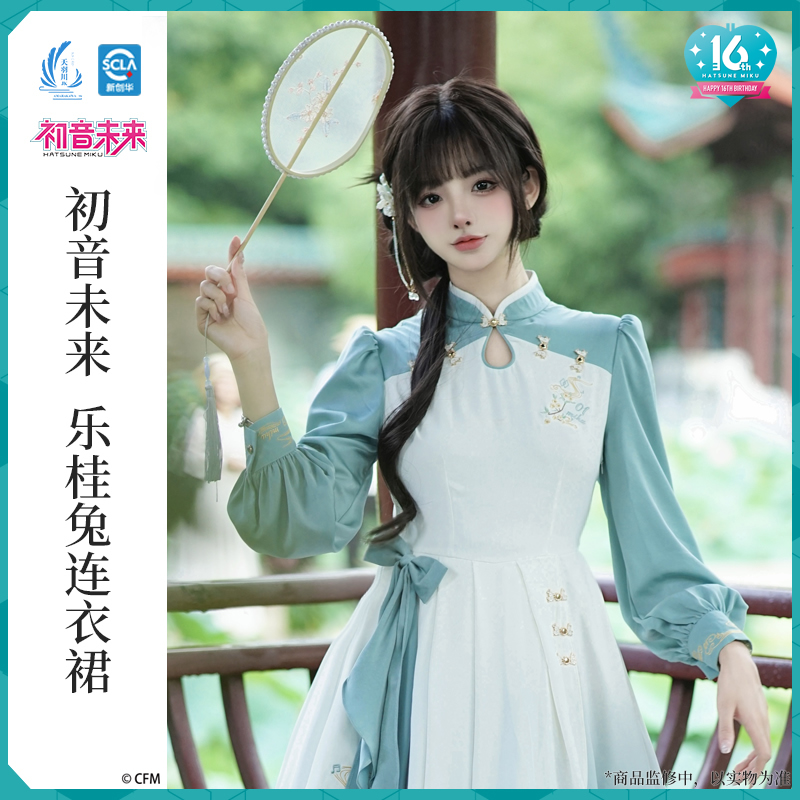天羽川初音未来正版联名汉元素连衣裙乐桂兔秋春季女款优雅大小姐,江苏 宿迁