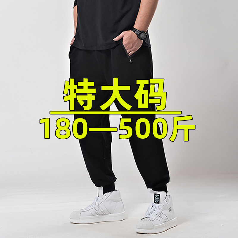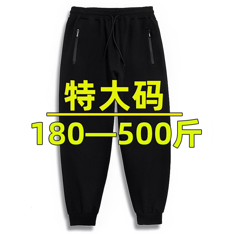 特大码卫裤男宽松弹力束脚胖子高腰休闲运动裤加肥加大男裤加绒厚