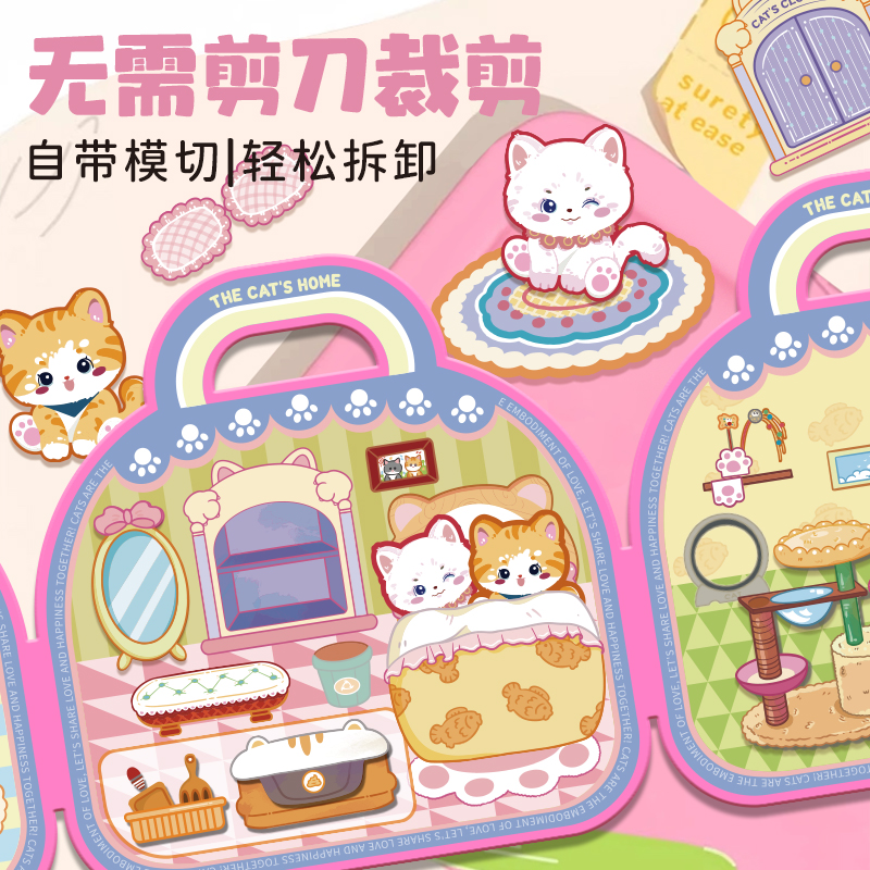 领养猫安静书免裁剪新款女孩玩具创意六一儿童手工制作diy材料包