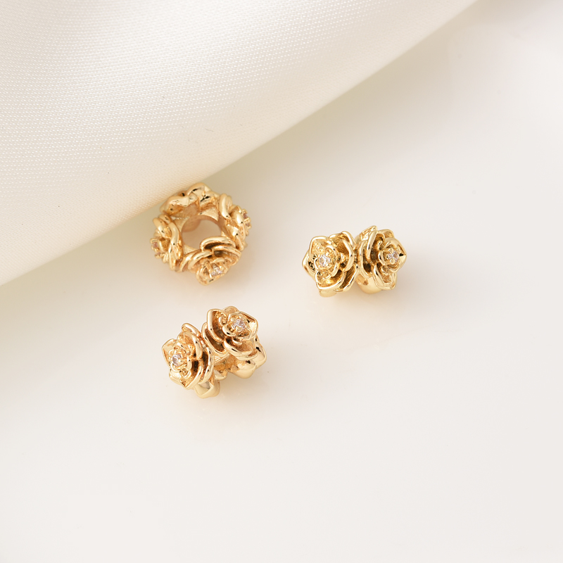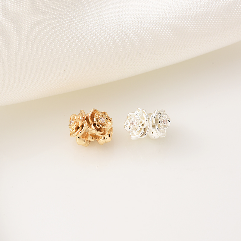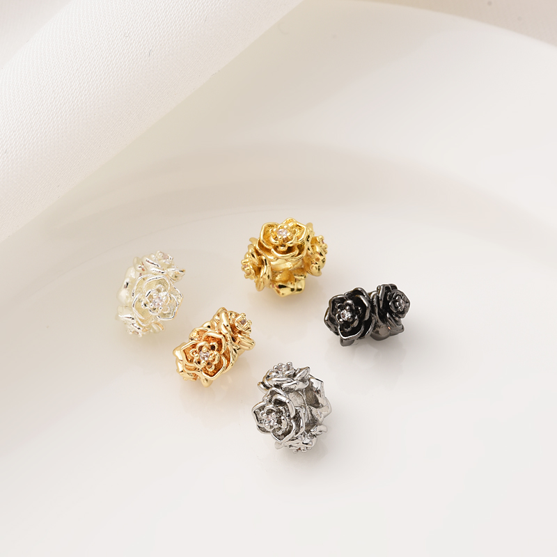 14K包金高保镶锆玫瑰花隔珠手工diy珍珠手链项链银色花朵串珠材料,浙江 金华