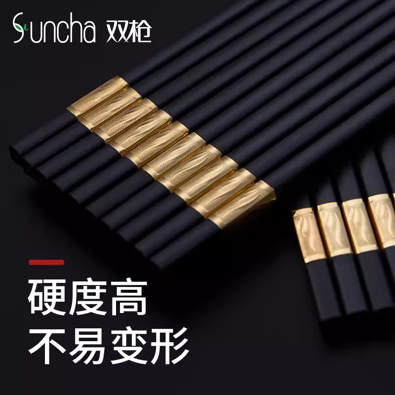 双枪合金筷子家用高档新款抗菌防霉精品家庭耐高温商用热销榜10双