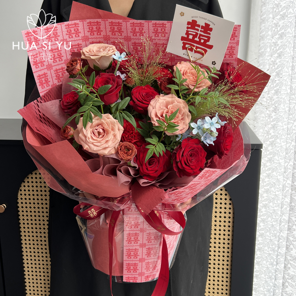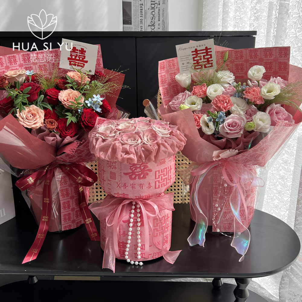 新款双喜喜庆包装纸鲜花束订婚结婚包花纸加厚牛皮纸DIY材料花艺
