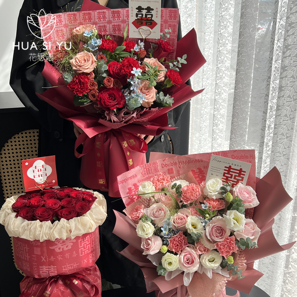 新款双喜喜庆包装纸鲜花束订婚结婚包花纸加厚牛皮纸DIY材料花艺,浙江 金华