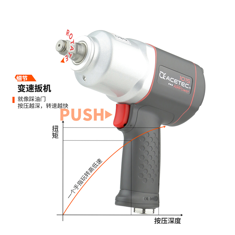 阿斯泰克ACETEC超轻型塑钢1015工业级气动扳手1/2大扭力小风炮
