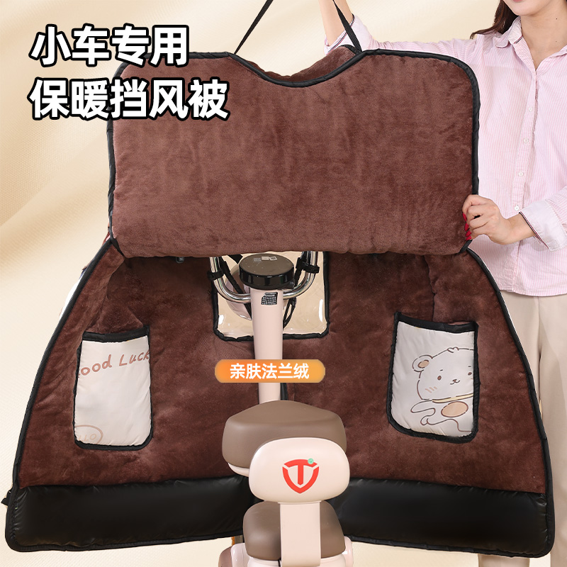 2025新款小型电动车挡风被冬季加绒加厚保暖开叉小车电瓶车防风罩,安徽 亳州