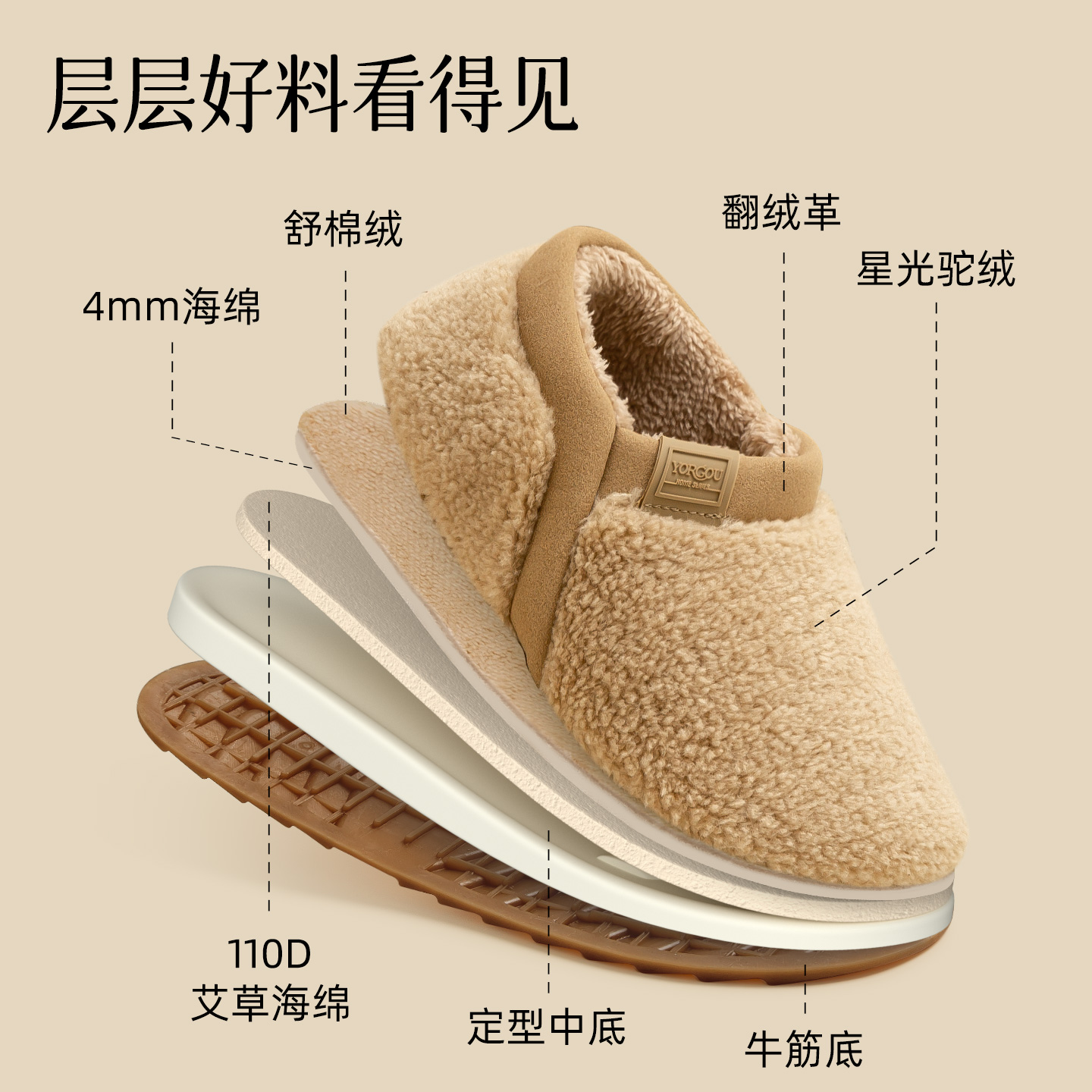 秋冬季保暖加绒棉鞋女室内居家用抗菌情侣包跟棉拖鞋办公室毛绒男,浙江 台州