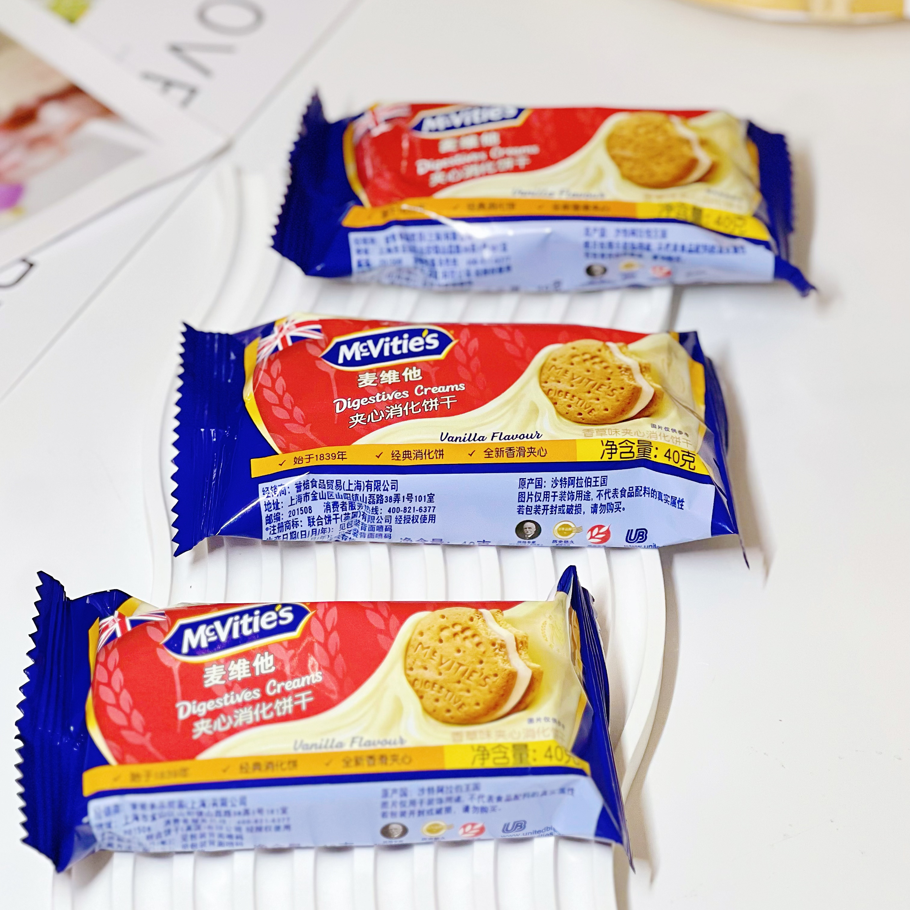 麦维他香草味夹心消化饼40g*10包零食饱腹代餐小零食营养点心茶点,浙江 金华