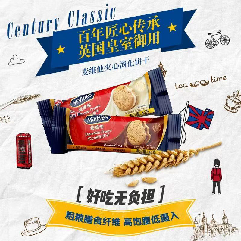 麦维他香草味夹心消化饼40g*10包零食饱腹代餐小零食营养点心茶点