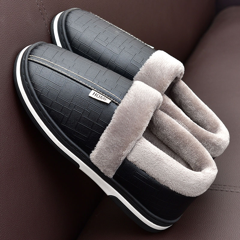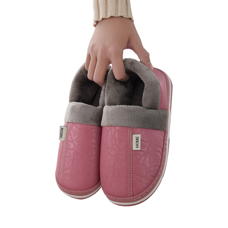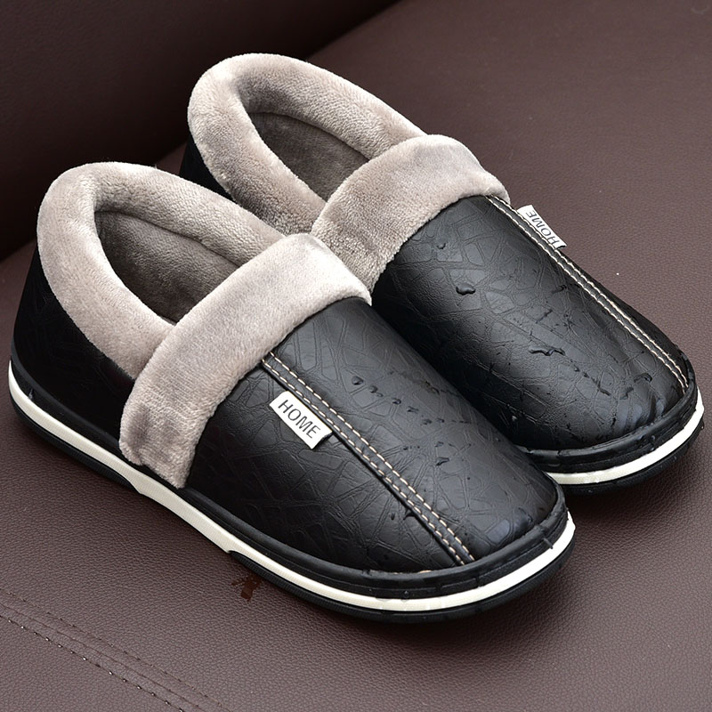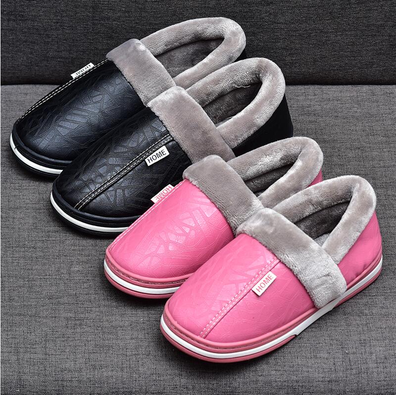冬季居家防滑包跟棉拖鞋男女PU皮防水厚底室内外女生情侣保暖棉鞋,浙江 金华