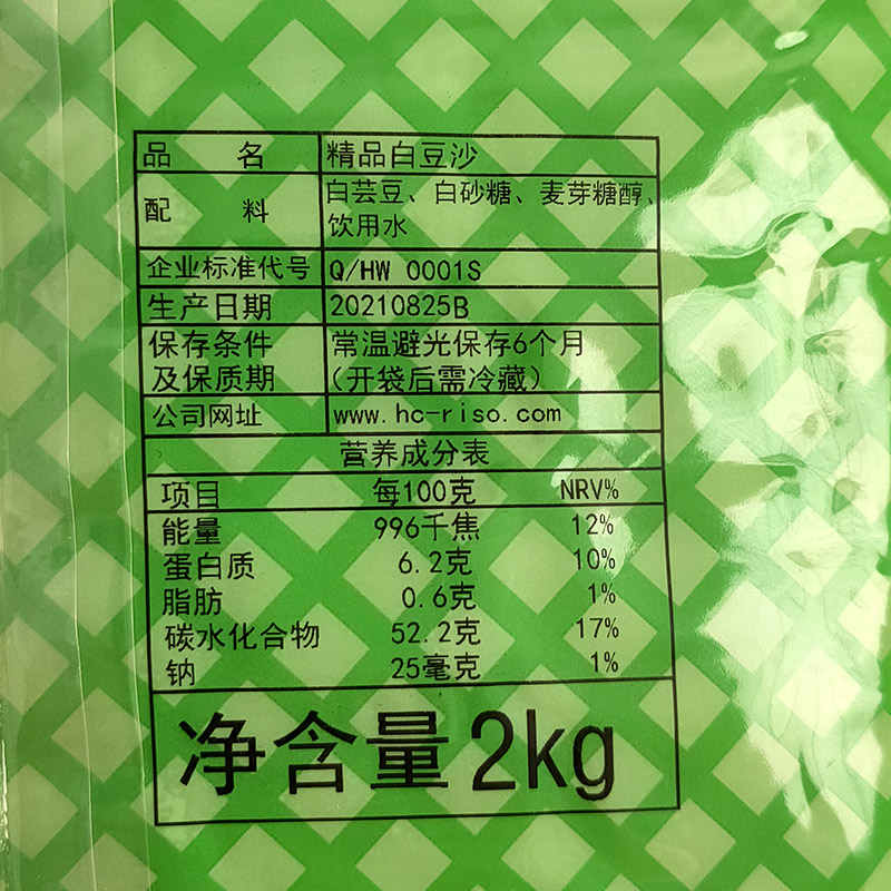力创低糖白豆沙馅白芸豆水性韩式裱花刮刀更白透果子材料馅料2kg,上海