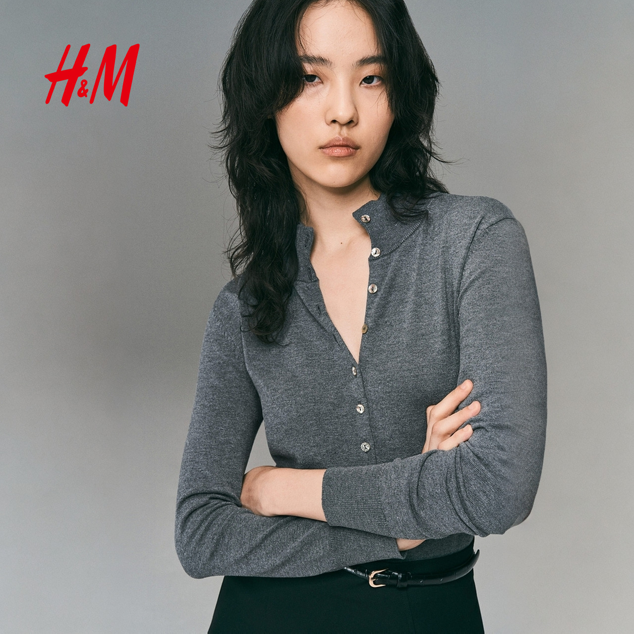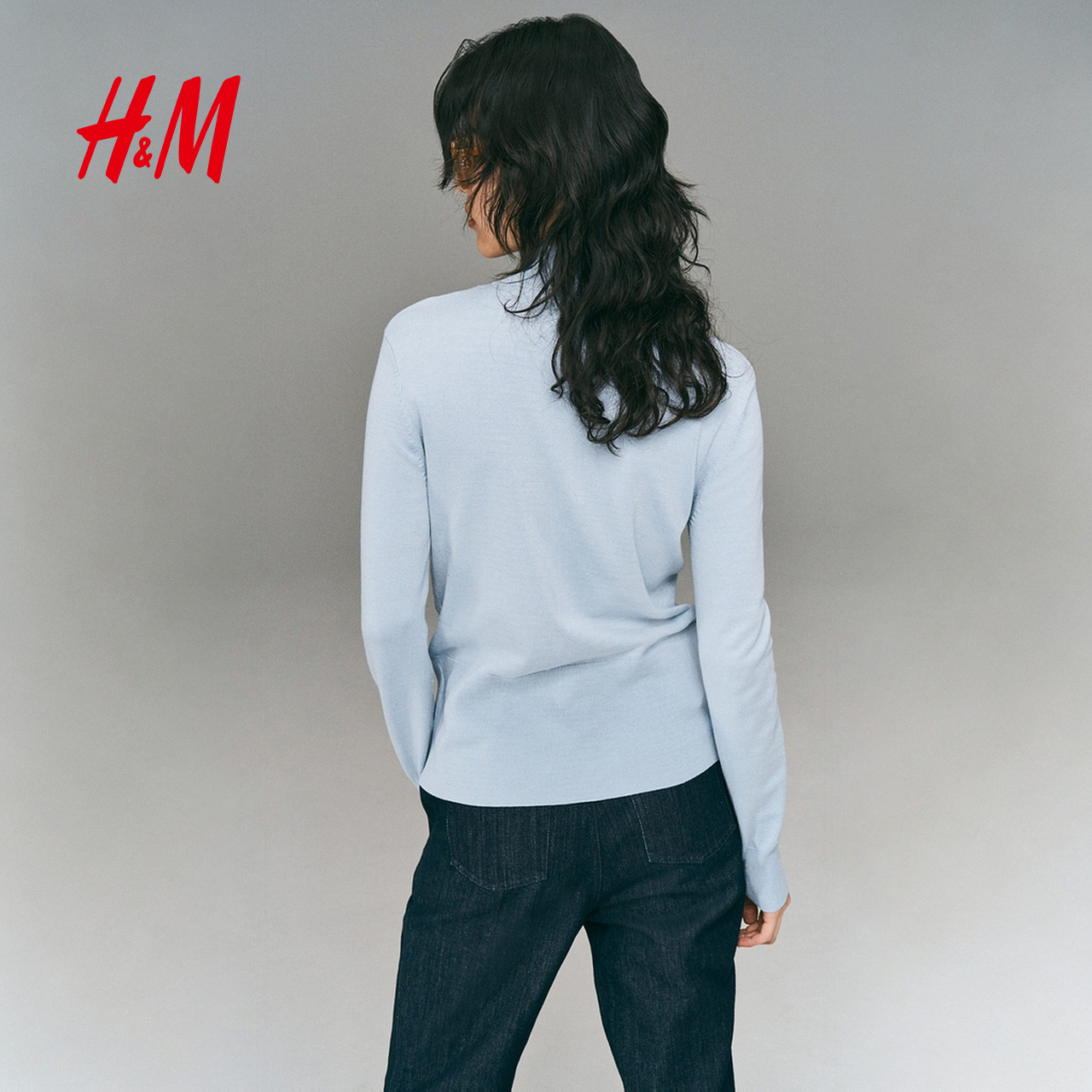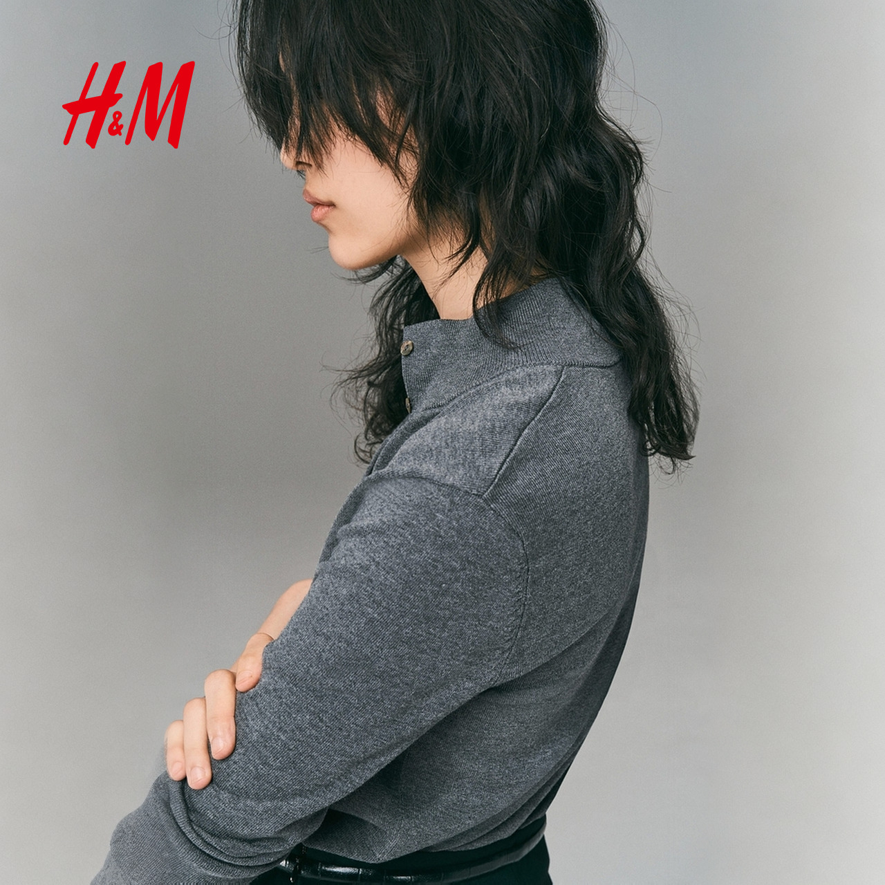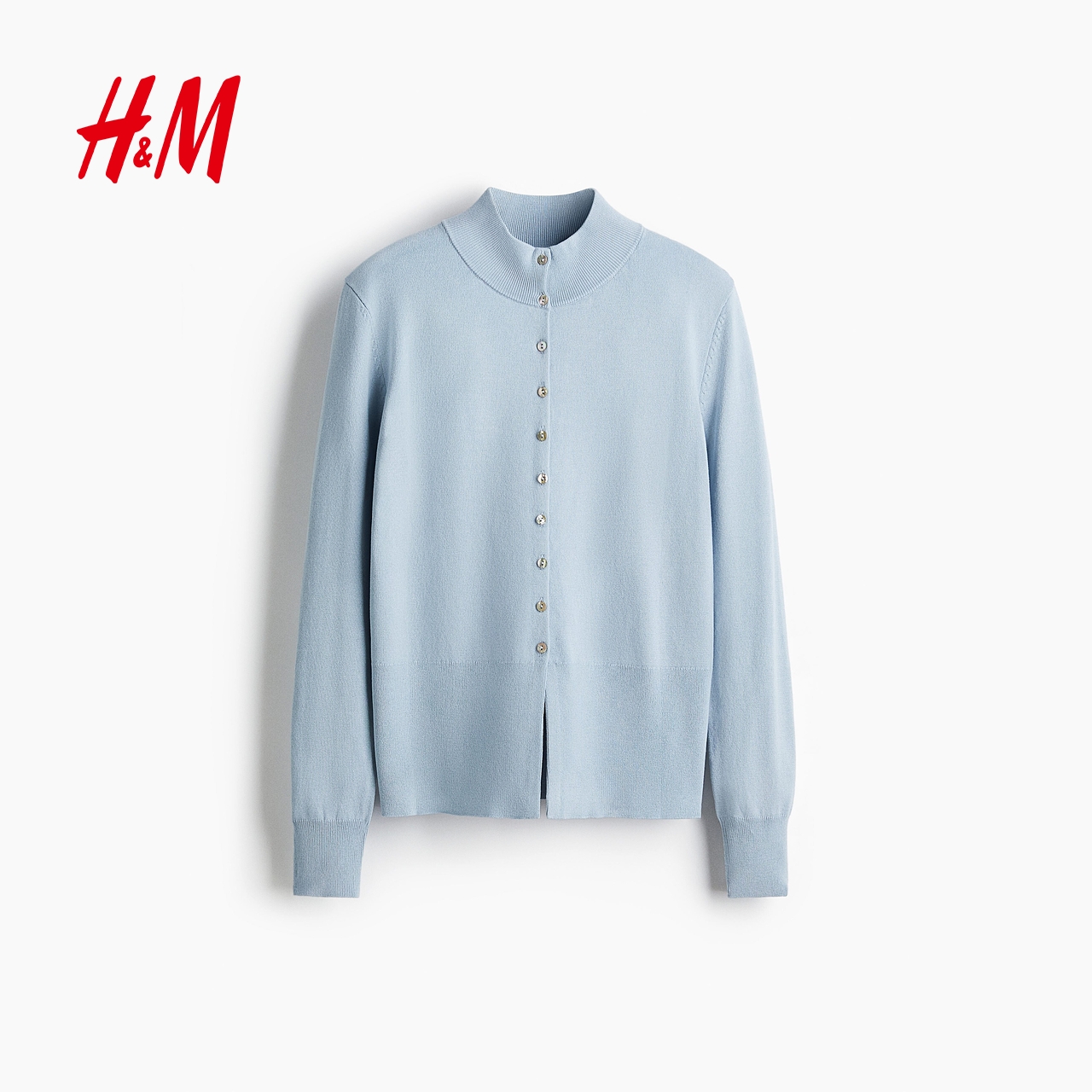 HM女装毛针织衫25秋季新款时尚针织衫粘纤混纺高领开衫1311915,江苏 苏州