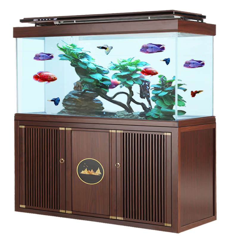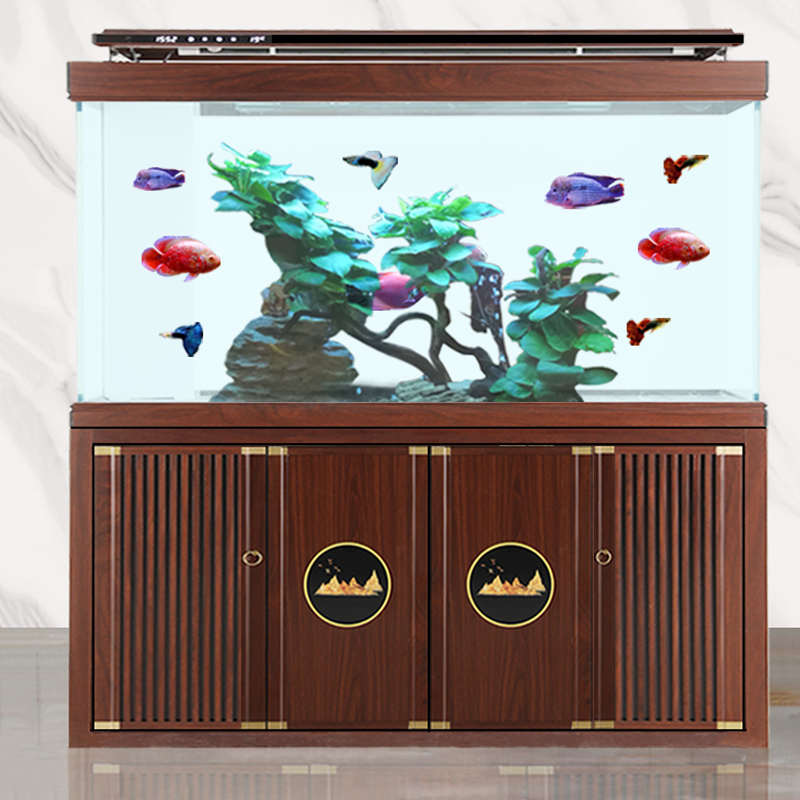 新中式鱼缸客厅中小型落地水族箱底柜过滤系统超白缸,四川 成都