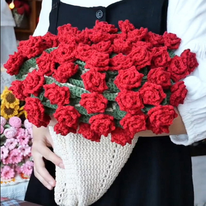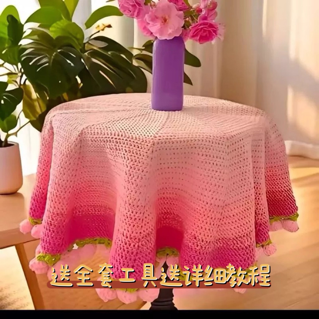 渐变粉色玫瑰毯子变花束盖毯毛线钩针编织手工礼物材料包玫瑰花