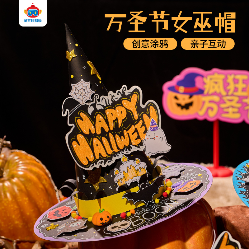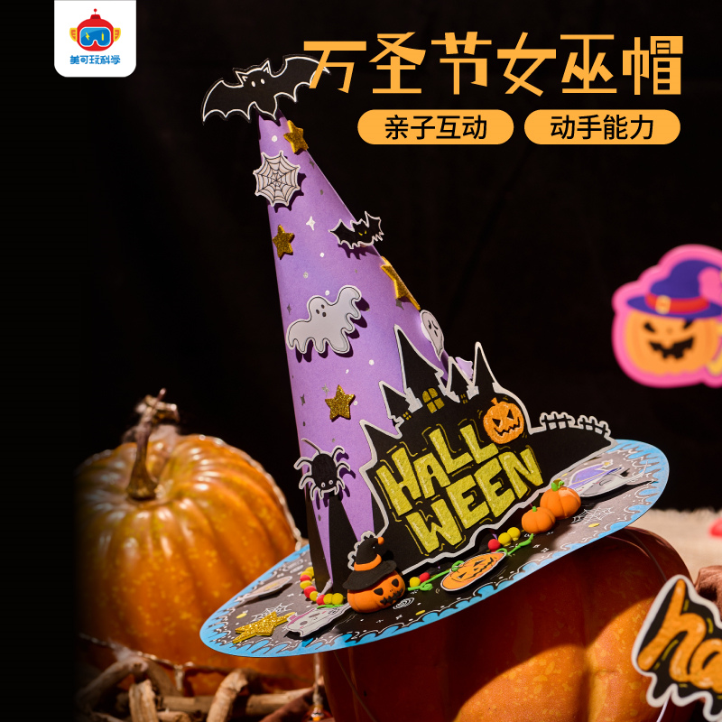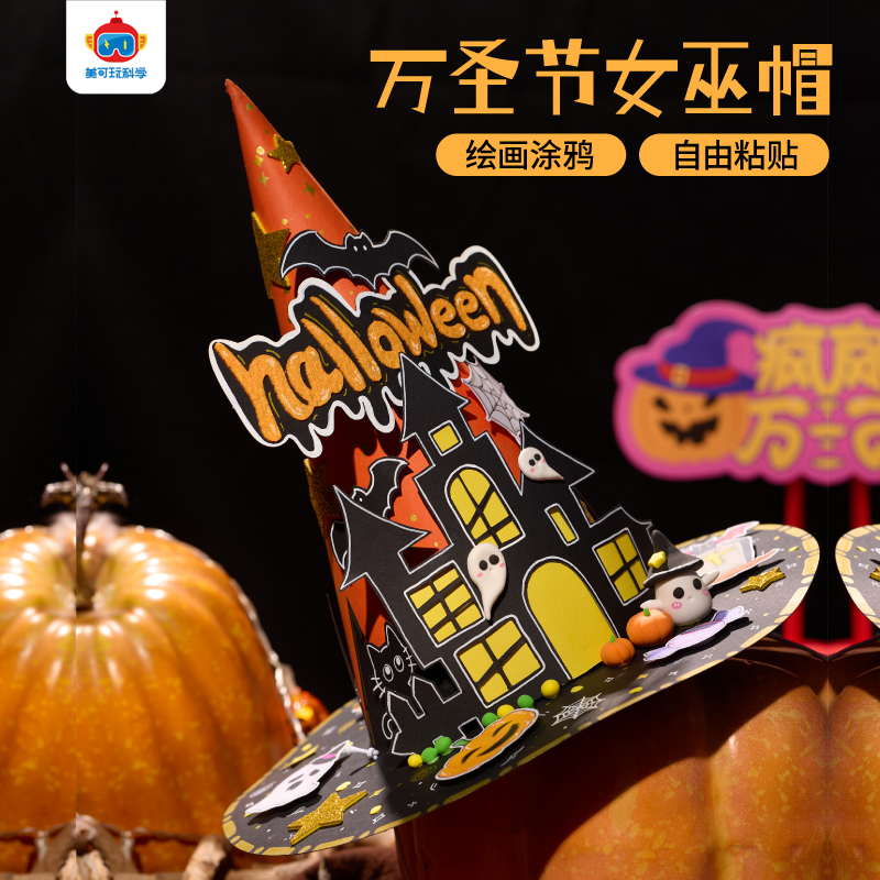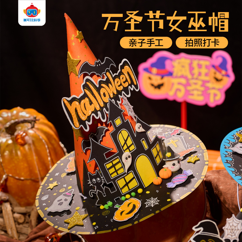 万圣节礼物儿童手工diy女巫帽制作材料包幼儿园帽子活动装扮道具