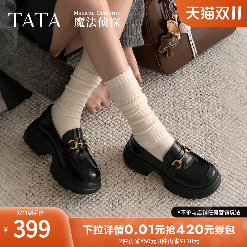 卢昱晓同款TATA他她魔法侦探厚底乐福鞋女真皮黑色小皮鞋JK鞋单鞋