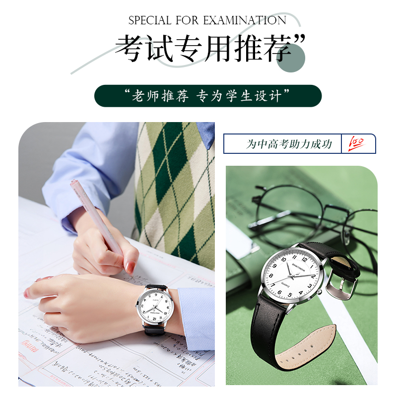 研究生考试专用手表男款女款考研初中初高中学生静音只看时间机械