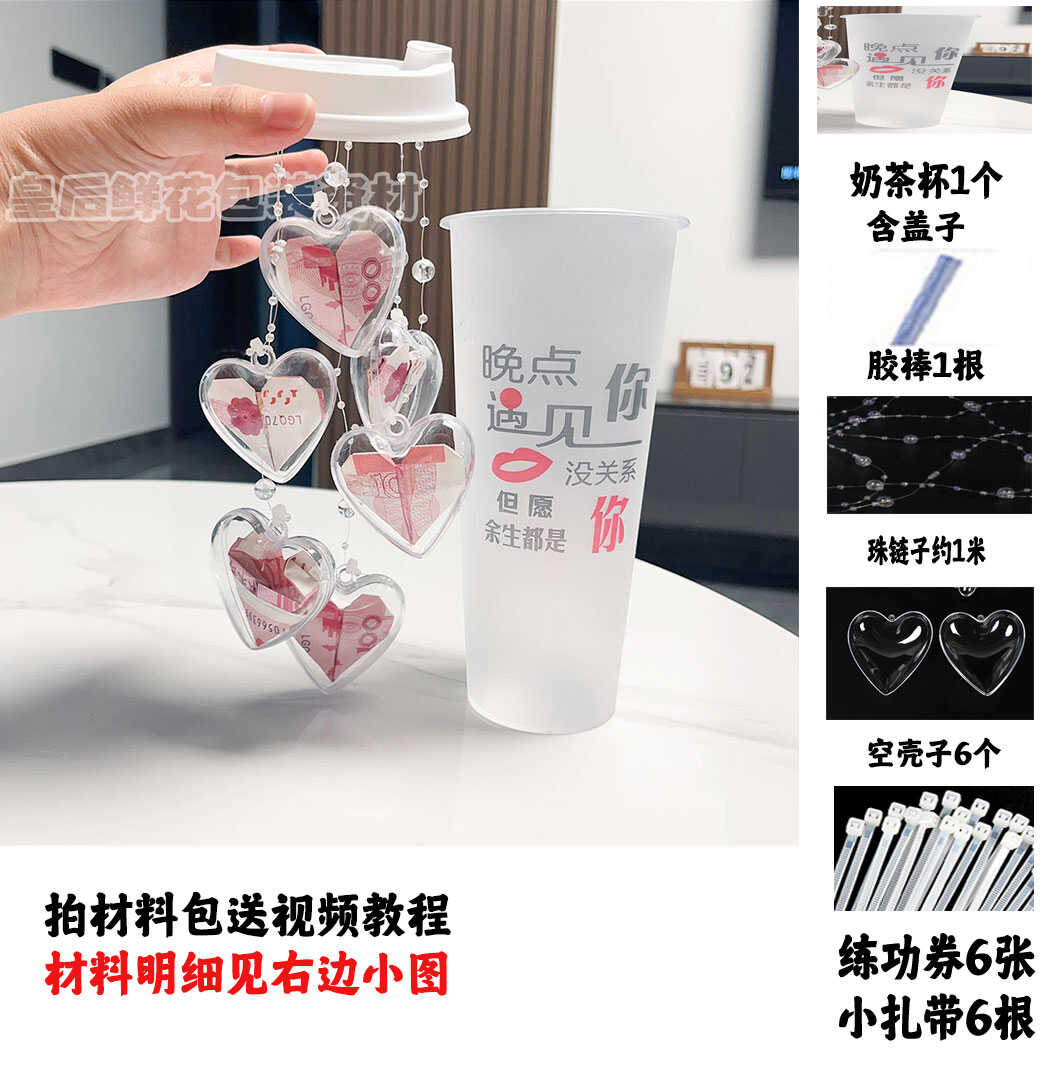 爱心风铃奶茶杯手工DIY材料包生日礼物情侣礼物创意礼送闺蜜好友