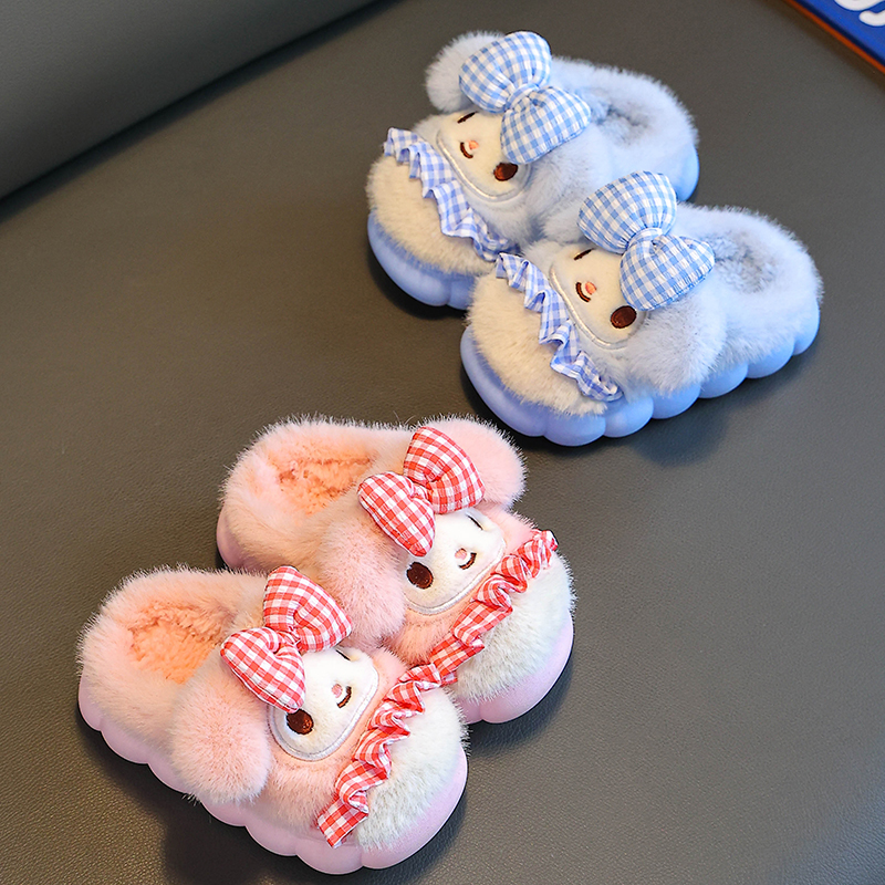 儿童棉拖鞋秋冬季女童卡通可爱居家毛毛鞋中小童保暖亲子包跟棉鞋,浙江 丽水