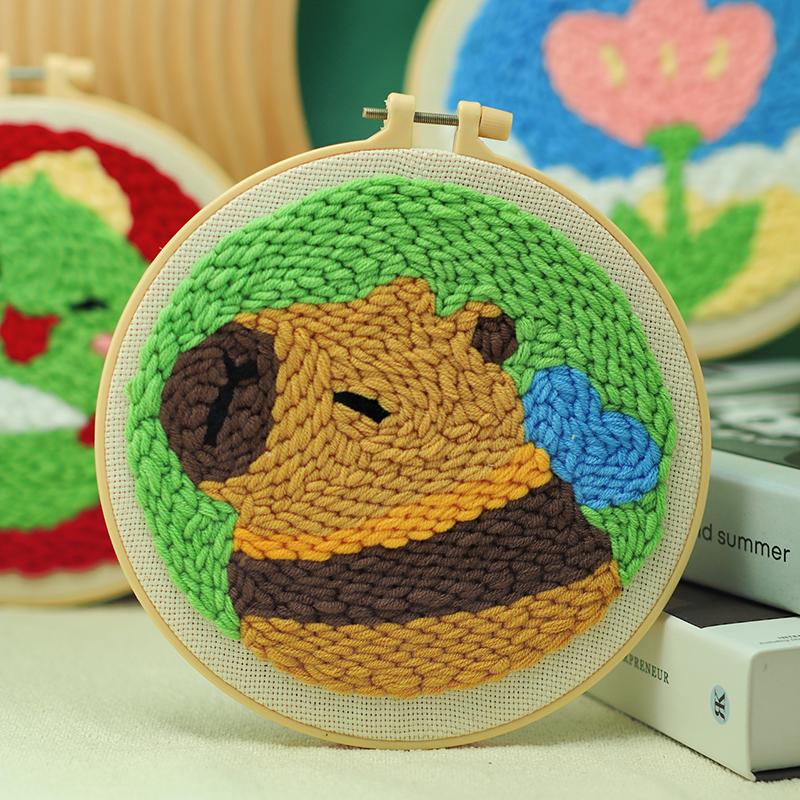 俄罗斯戳戳绣卡皮巴拉手工diy毛线画材料包可爱卡通图案益智简单,浙江 金华