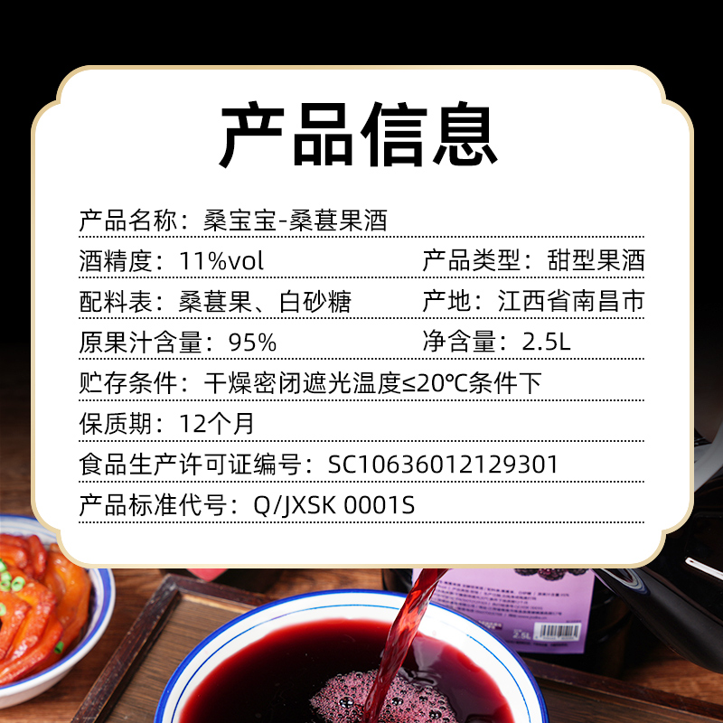 百伯利旗舰店桑葚酒低度微醺果酒男女士11度桶装甜酒2.5L大瓶,江西 南昌