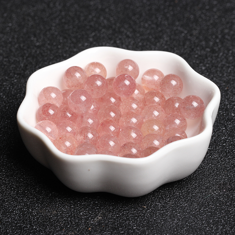 天然5A草莓晶散珠子半成品DIY手工饰品配件材料串珠单颗蔷薇晶