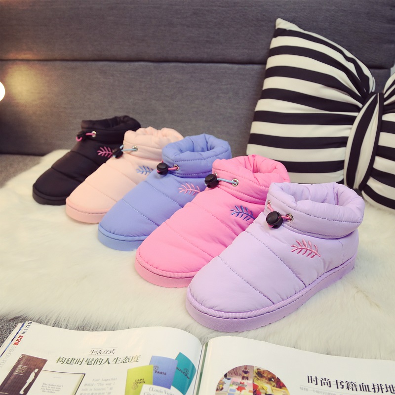 冬季羽绒防水保暖情侣棉拖鞋厚底防滑居家用棉鞋包跟女冬天月子鞋,浙江 宁波