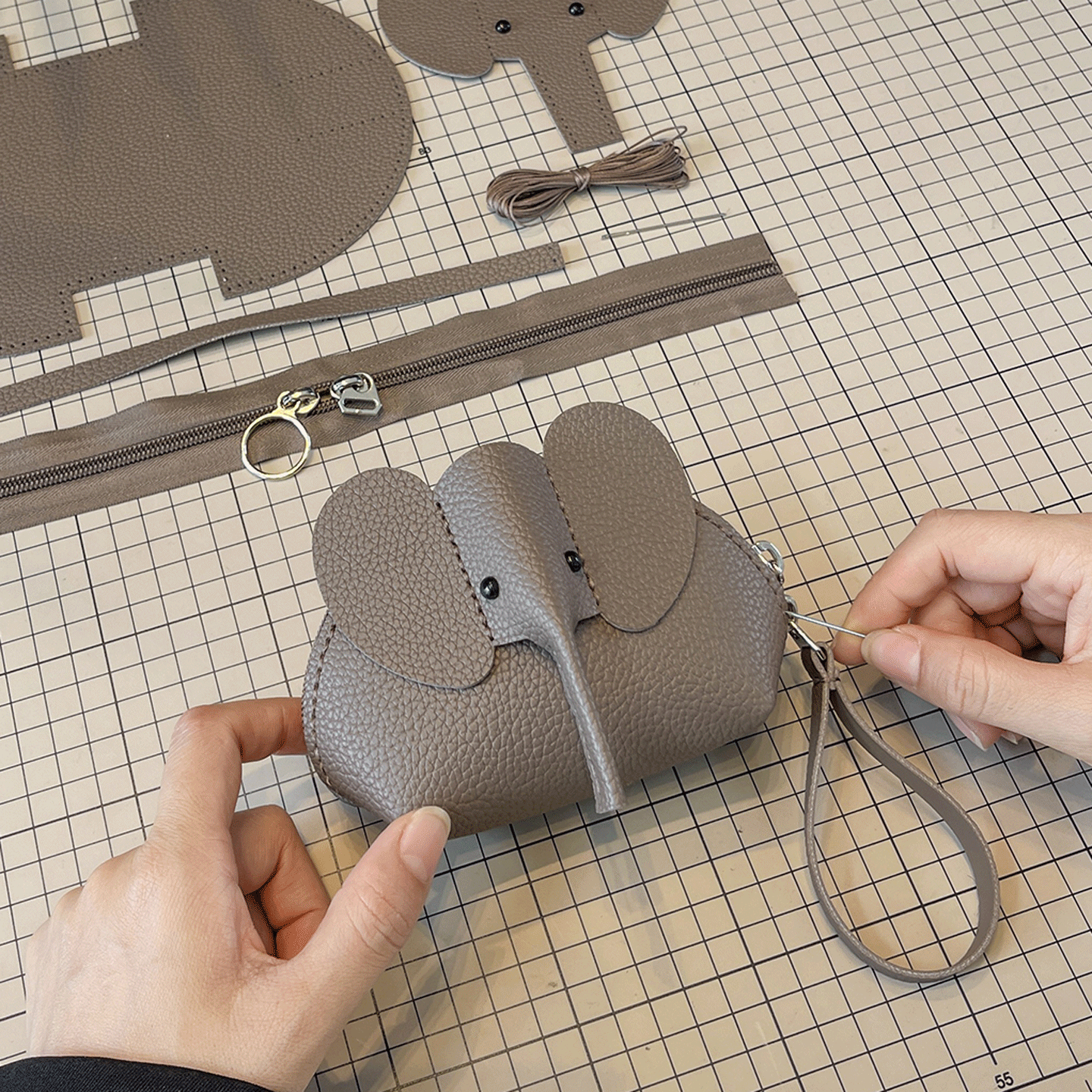 喵小咪小象零钱包diy手工编织包包自制材料包手缝迷你收纳耳机包