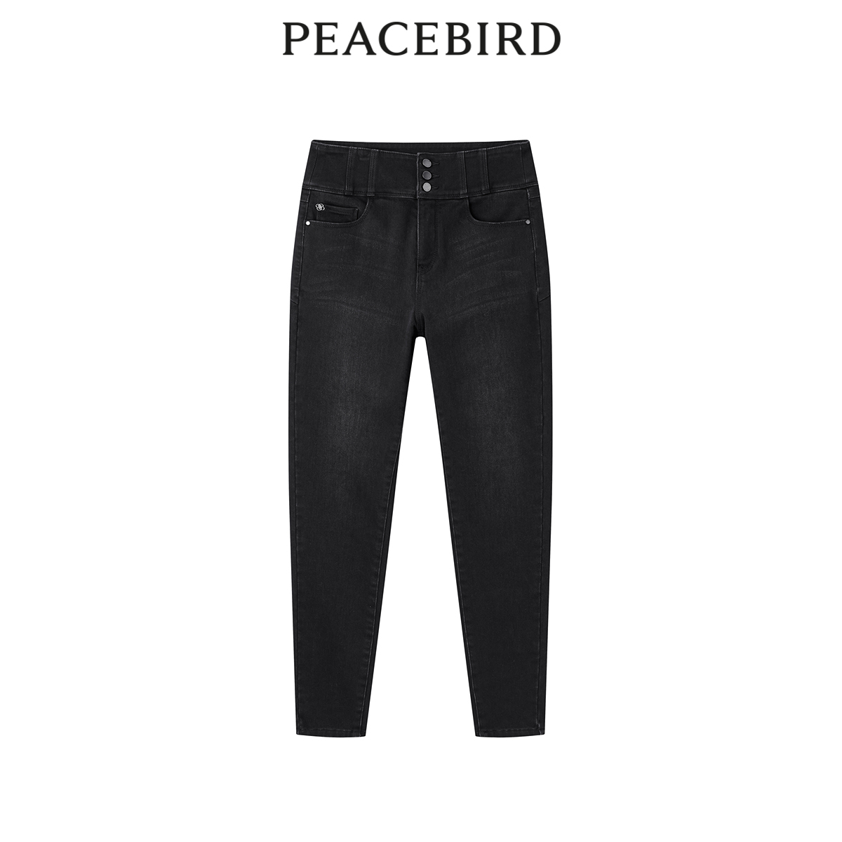 太平鸟冬季新款暖感高腰小脚牛仔裤A1HAD4497