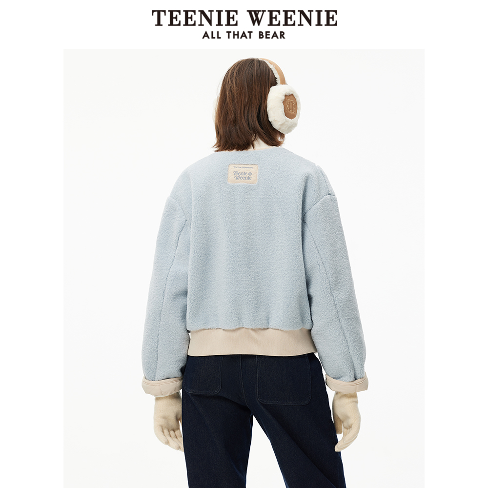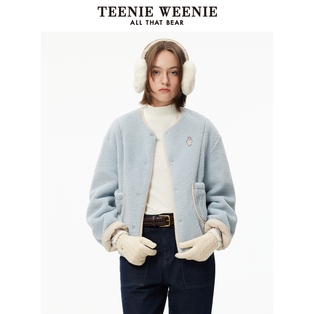 【两面穿】TeenieWeenie小熊女装秋简约休闲时髦仿羊羔绒刺绣外套