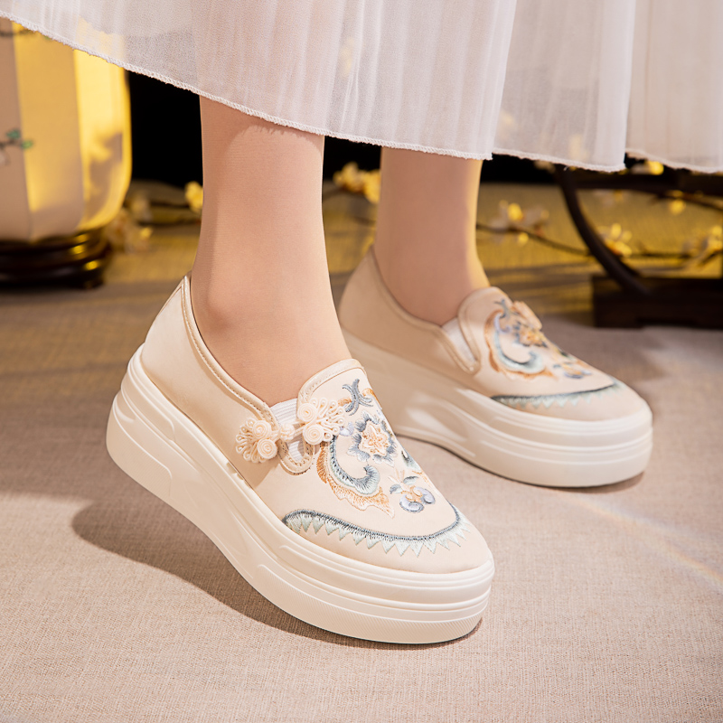 古风汉服鞋子增高厚底新中式绣花鞋复古配旗袍民族风老北京布鞋女,湖南 长沙