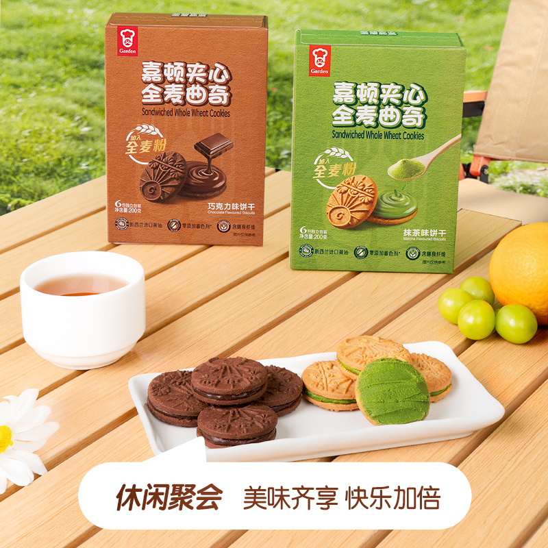嘉顿夹心全麦曲奇饼干200g*2抹茶巧克力味黄油饼干休闲解馋小零食