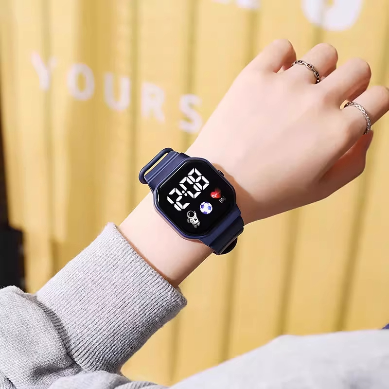 太空人电子手表儿童男生女孩小学生只看时间高颜值夜光防水小方块