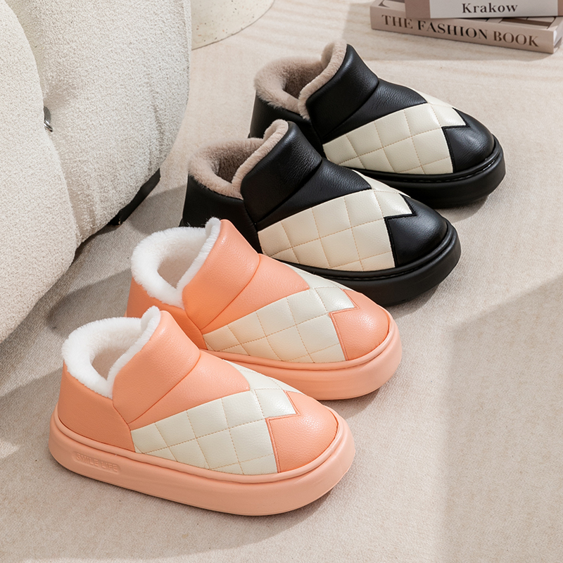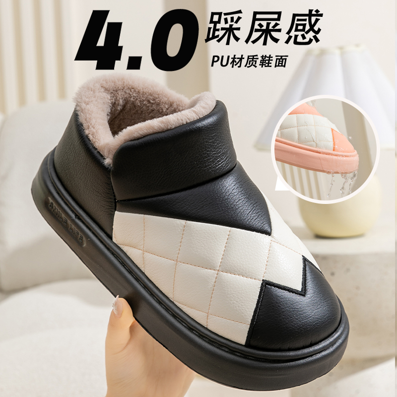 男士棉拖鞋冬天包跟保暖加绒厚底居家室内外穿防滑PU皮防水棉鞋男,浙江 宁波
